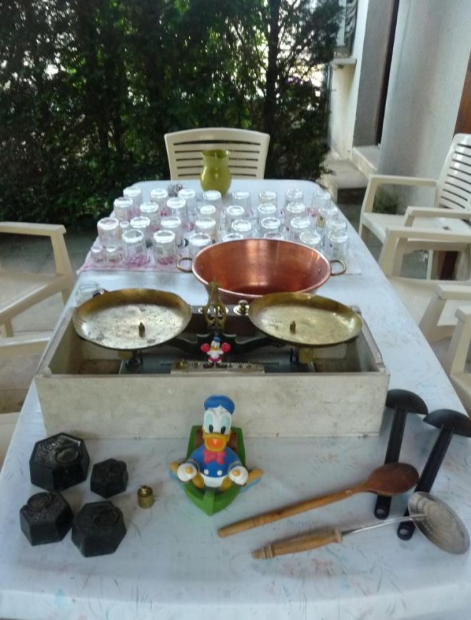 Balance, pots, bassine etc. ... , il y a tout.