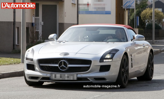 L'automobile magazine à trouve de nouvelles images de la SLS mais en version cabriolet. Mais selon moi elle ne sera pas au niveau du coupé car, décliner la SLS en cabriolet la rendra plus lourde, ce qui pénalisera sa sportivité et en plus sans les portes papillions, c'est plus la même chose...