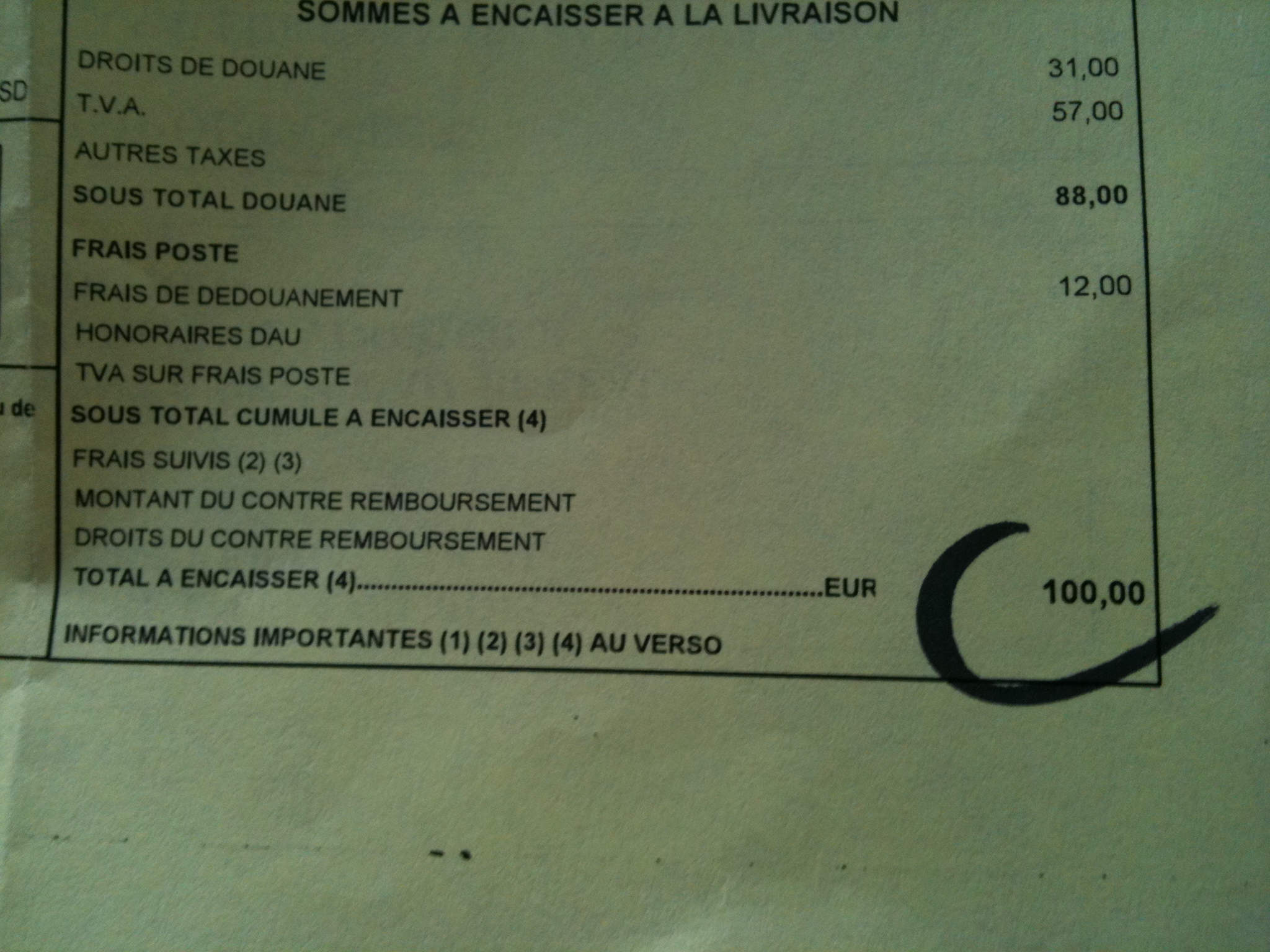 J'arrive chez moi, déjà, je me dis que je suis content de ne pas avoir eu à payer, y'en a pour 100 euro de douanes quoi !