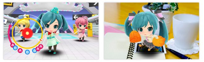 Le mode réalité augmenté permet quant à lui, après avoir imprimé la carte disponible sur le site de Sega, de voir Miku en pom pom girl nous interpréter une musique guillerette. Mignon à en crever étouffé par un nounours en guimauve, c'est selon moi l'expérience de réalité augmentée la plus concluante à ce jour sur 3DS, avec Bravely Default. Il y a fort à parier qu'on pourra changer les musiques et les habits de Miku dans la version finale du titre. De quoi s'amuser 5 minutes avec une Miku au creux de la main.