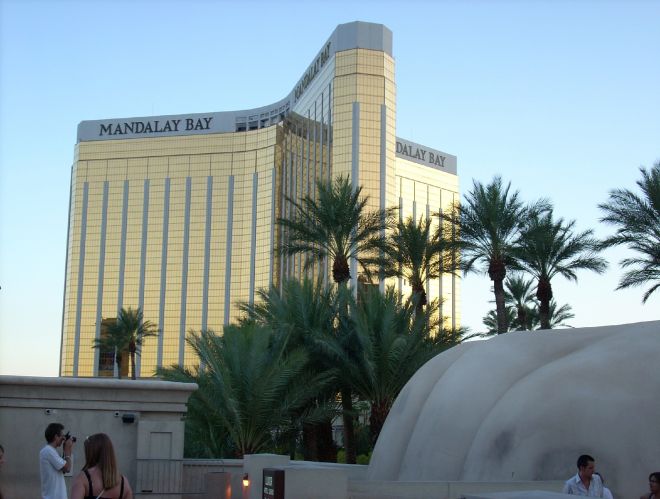Derrière la patte de la grande bestiole mythologique, le Mandala Bay, dernier hotel-casino dans lequel nous ne nous sommes même pas rendu (il n'a rien d'attirant).