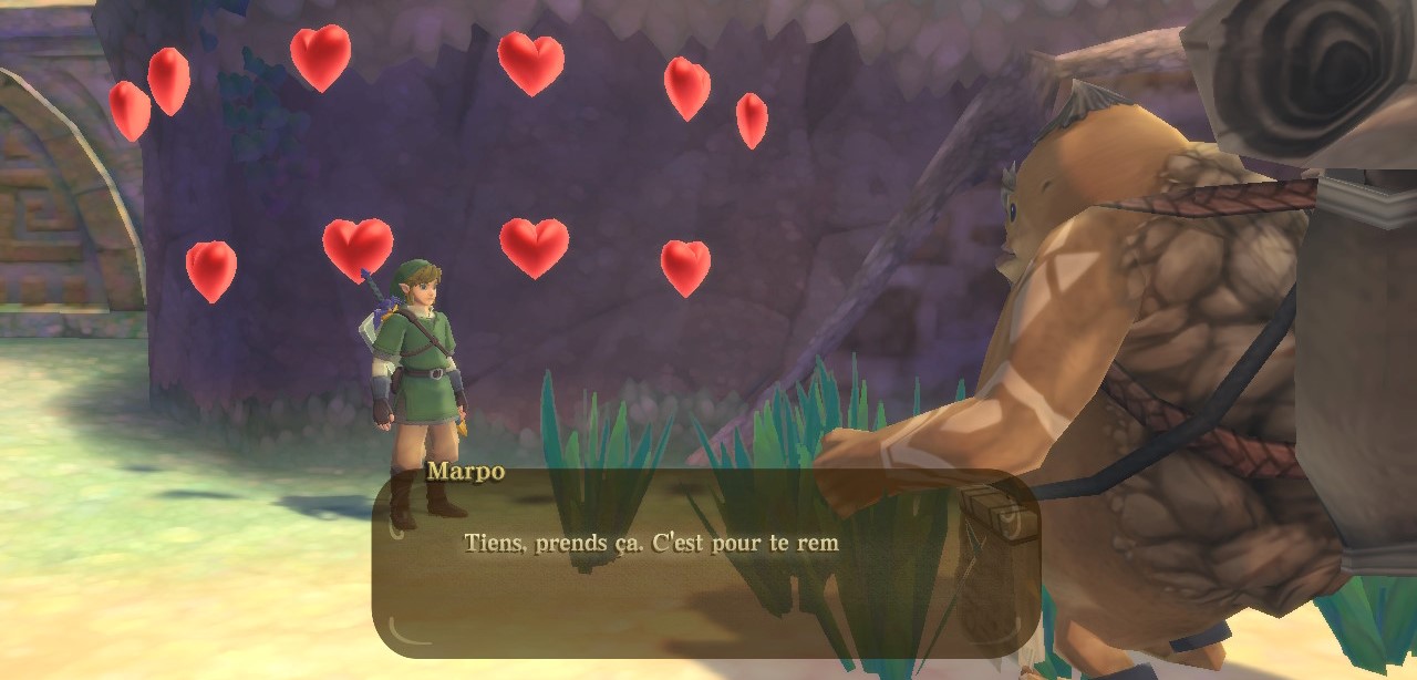 Voilà pour le casting principal, autour duquel s’agrège toute une galerie de rôles secondaires plus ou moins marquant. Je relèverai Impa hyper classieuse, Marpo le goron archéologue, Récupix le robot épris de Fay, Ycéo le capitaine lui aussi robot accompagné de son navire temporel (j’y reviendrai) et d’autres qu’il vaut mieux taire pour conserver l’effet de surprise.