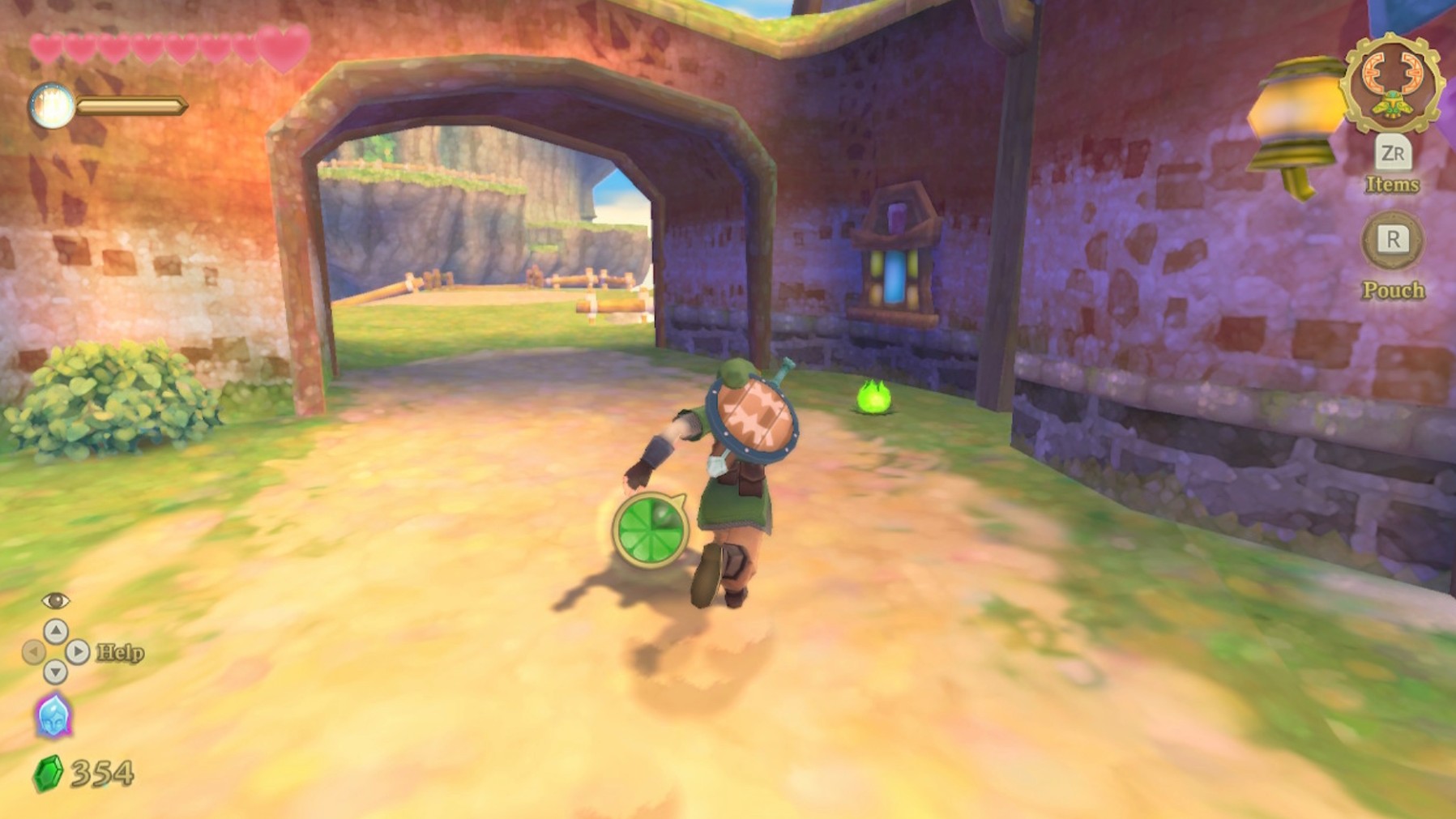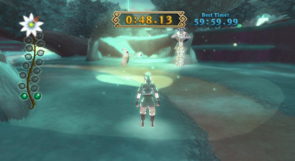 Link est pourvu d’une barre d’endurance, qui s’épuise quand il fournit un effort. Le principe sera repris et ‘amélioré’ dans BotW. Des petites bulbes vertes permettent de remplir directement la jauge, qui sinon remonte automatiquement quand le héros est au repos. Mais si elle se vide, il se retrouve épuisé et il ne peut plus que se mouvoir très lentement. Attention donc à ne pas perdre toute sa sagacité au milieu d’un groupe hostile, où sinon gare aux représailles !