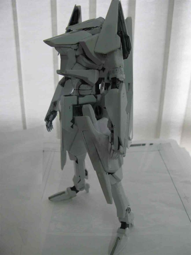Pour la petite histoire, voici le mecha de Tanikaze, le Type 17. "Tsugumori" tel que son créateur l'a imaginé. Pour ce faire, il a acheté des dizaines de maquettes dont parfois il ne récupérait qu'une pièce qu'il l'interessait. Il assembla le tout au petit bonheur, juste poussé par la vision de ce mecha auquel il voulait donner vie.