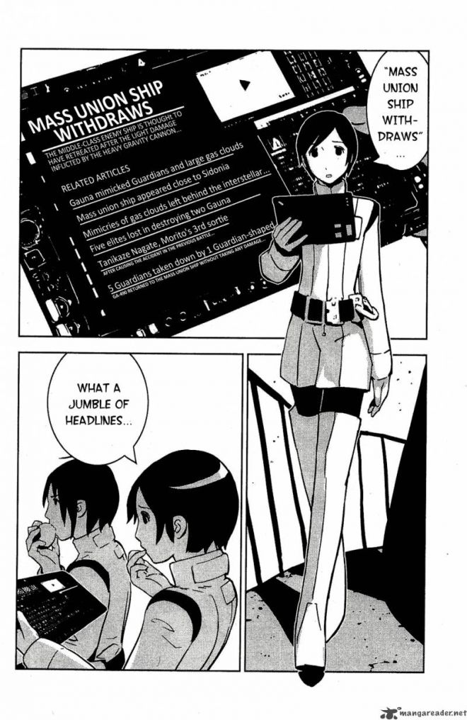 Mais alors que le Sidonia essaye de trouver une planète habitable, les Gaunas continuent de pourchasser l’humanité. Pour se défendre, les humains se reposent sur une armée de mechas pilotés, les Sentinelles, qui peuvent, à l'aide d'un substance extra-terrestres mystérieuses la Lemme, tuer les Gaunas.