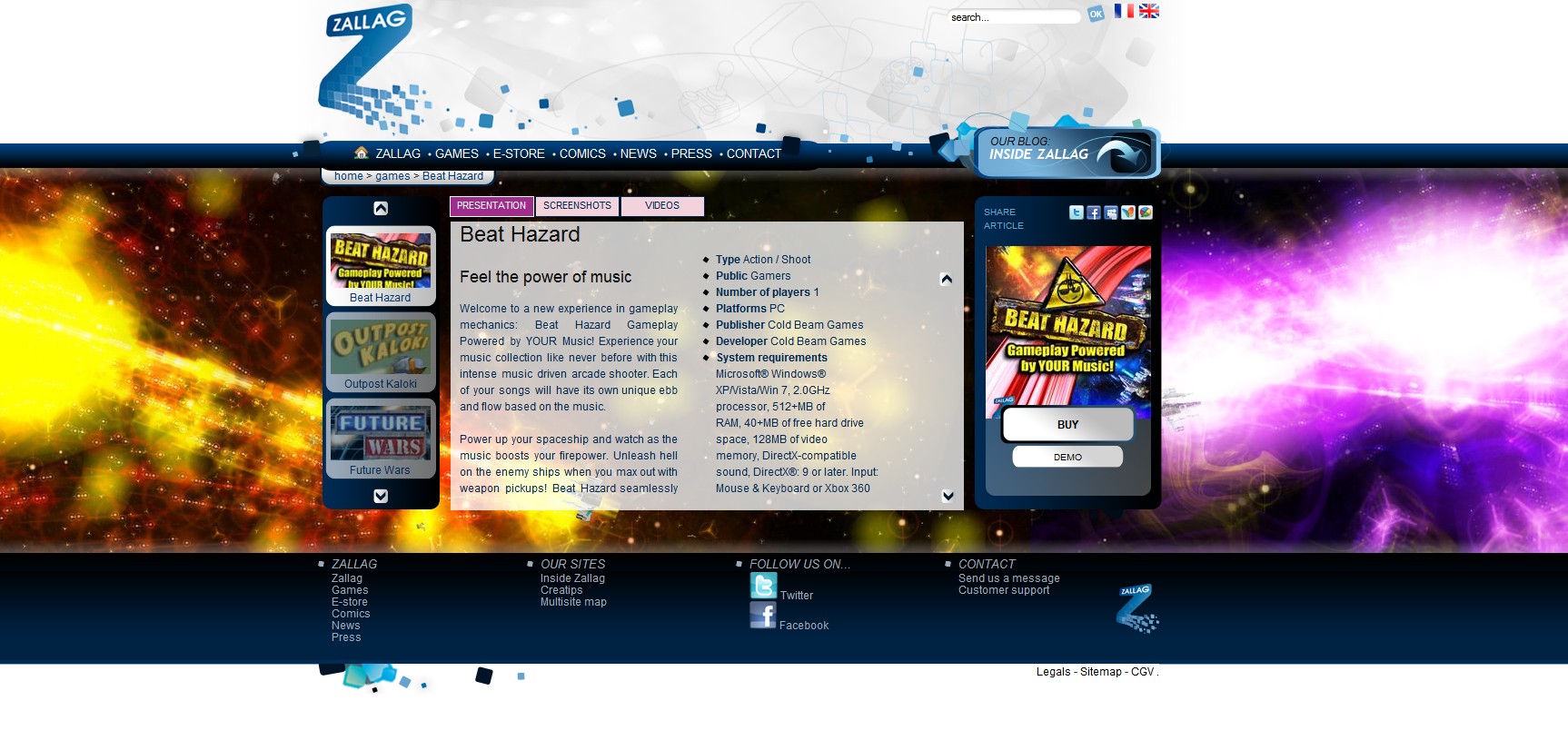 shoot en musique avec Beat Hazard, de la gestion avec Tropico 3 et Imperium
