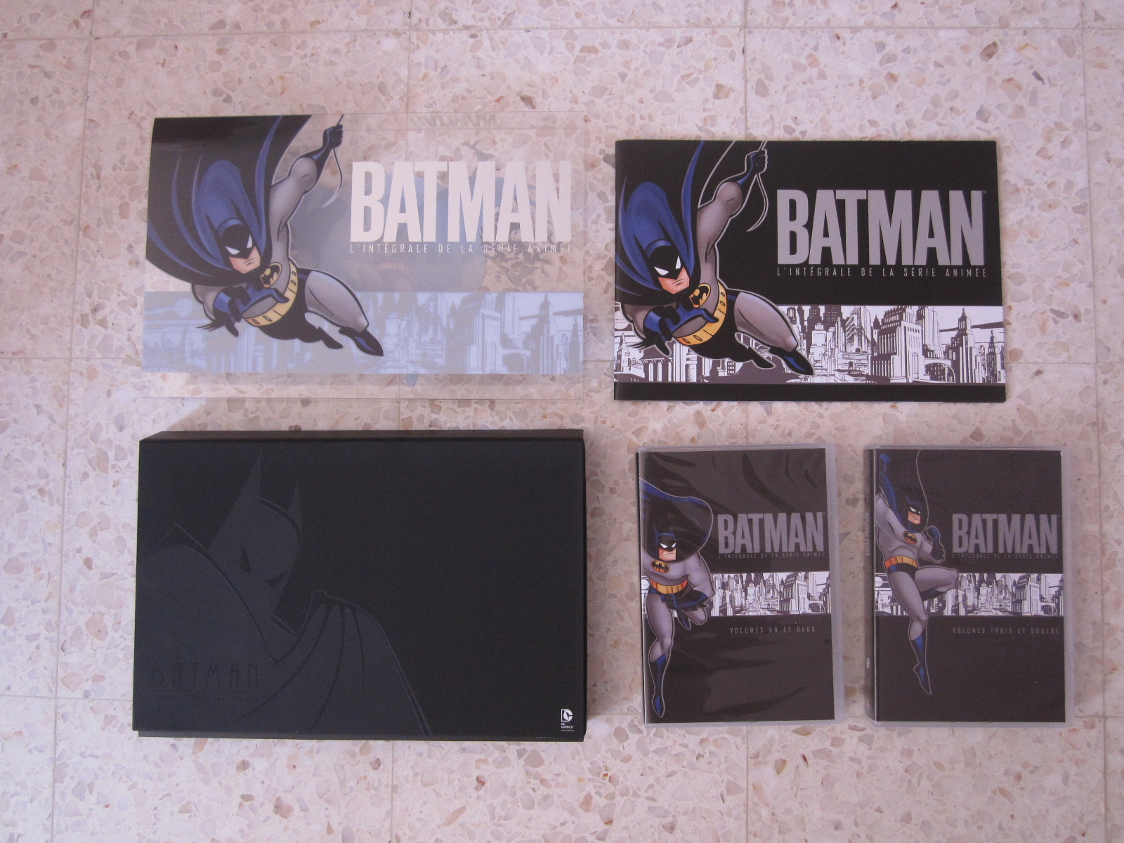 Ensuite, toujours en solde (70 euros), j'ai réussi à dégoter Batman l'intégrale de la série animée. Il fallait être rapide car les stocks sont vite partis. Un livret contenant des dessins accompagne le coffret.