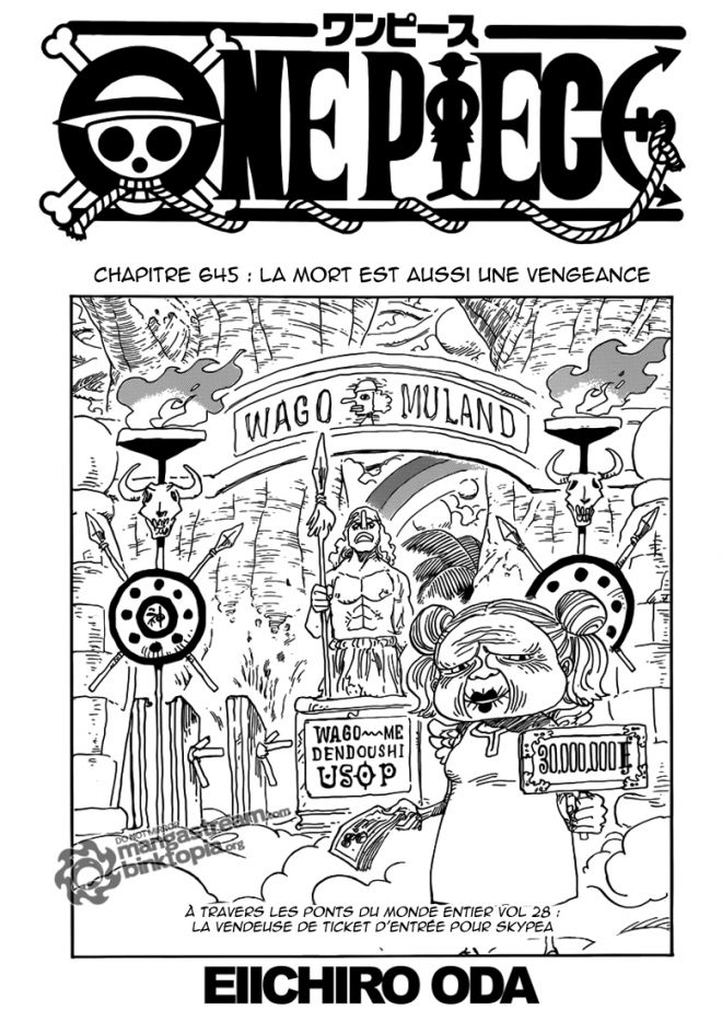 Le nouveau chapitre est sorti et je me contente aujourd'hui de dire : le chapitre 645 de One Piece vient de sortir en traduction française sous le nom de La mort est aussi une vengeance.