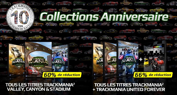 Pour l'occasion, un pack anniversary Trackmania² (19,99€) et un pack anniversary Trackmania² + Trackmania United Forever (29,99€) sont disponibles sur le shop d'Ubisoft et sur Steam.