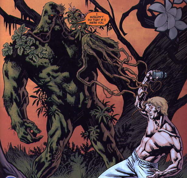 Swamp Thing (ST) c'est pourtant une histoire un peu bateau d'une terre ou s'affronte 3 grandes forces : The green (force de la nature), the red (force de la chair), et The rot (force de la pourriture). The green et The Rot semblent néanmoins être les forces majeures et s'affrontent pour le contrôle du monde. ST, c'est un des chevaliers de la nature.