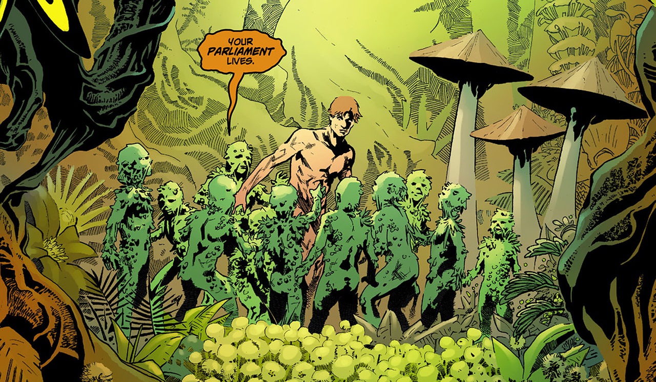 On suit donc l'histoire du Dr Holland, biologiste qui après une expérience foireuse avait fusionné avec la verdure et était devenu un monstre végétal. Le reboot est amené assez rapidement et de manière plutôt floue : On comprend que Holland est vraiment mort après son expérience ratée, mais que sa conscience a été transférée dans cette d'un ST, en attendant sa reconstruction à la Shepard dans Mass Effect 2. Holland a donc ici dès le début une affinité avec la nature, mais est bien humain, même s'il a les souvenirs de l'ancienne série. Mais cette fois, il refuse de redevenir un monstre. Pendant ce temps un dieu de la pourriture arrive sur terre et veut tout faire péter.