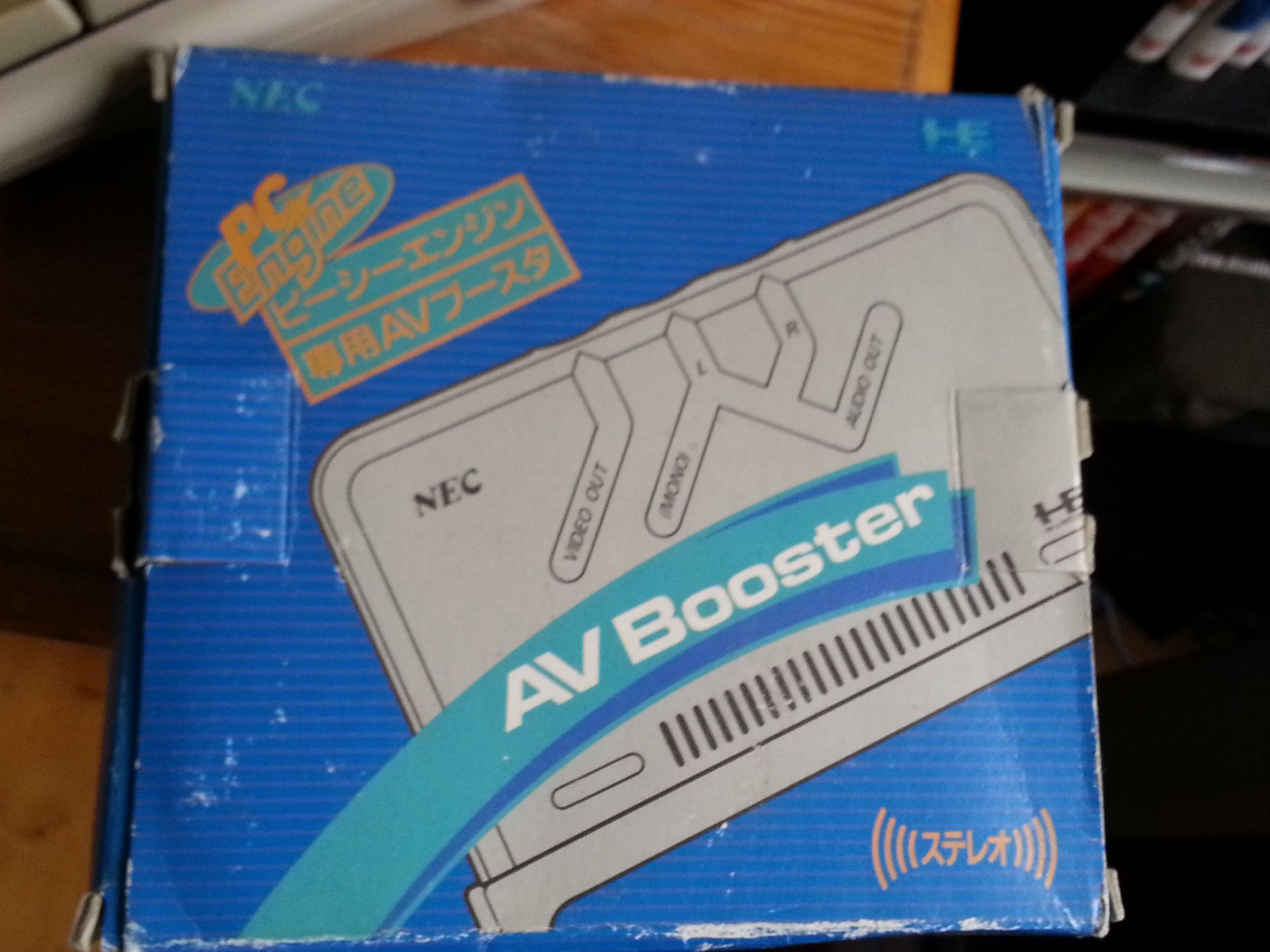 J'ai voulu comprendre la raison de ce mariage raté, alors qu'il avait tout pour durer. Alors j'ai cherché, et cherché encore. Pour finalement découvrir grâce à des connaisseurs, voici un peu moins d'un mois, que la console qui tournait à la FNAC lors de mon premier contact avec la machine n'était sans doute pas une Coregrafx adaptée par Sodipeng (deuxième version de la console, transformée pour convenir au standard SECAM 50hz des écrans français à l'époque). Il devait s'agir d'une PC-Engine japonaise, premier modèle, de couleur blanche. La particularité de la machine tient de fait à sa sortie vidéo : conçue pour délivrer son signal sur antenne, la première PC-Engine avait rapidement été dotée d'une extension dénommée AV Booster, d'ailleurs indispensable pour fonctionner sur les écrans européens. L'AV Booster se connectait au bus extérieur présent à l'arrière de la console, et avait pour principal avantage de délivrer une image plus nette et plus fluide que celle proposée par un signal AV standard, en vigueur à partir de la Coregrafx.