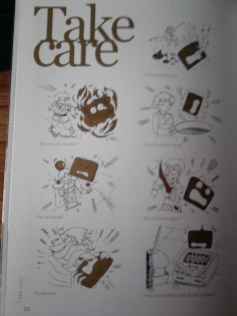 Pier Solar, traduit en plusieurs langues (dont le Français), est donc arrivé chez les personnes qui l'avaient précommandés il y a un peu plus d'un an. Le jeu est livré dans une boite au design repris des cartouches originales, contenant également sa version Mega-CD, et accompagné d'un livret de 23 pages, magnifiquement illustré. Un véritable travail d'orfèvre ! En témoigne cette page de recommandation de précaution, avec ses petits dessins de personnages de fantasy jouant avec la cartouche.