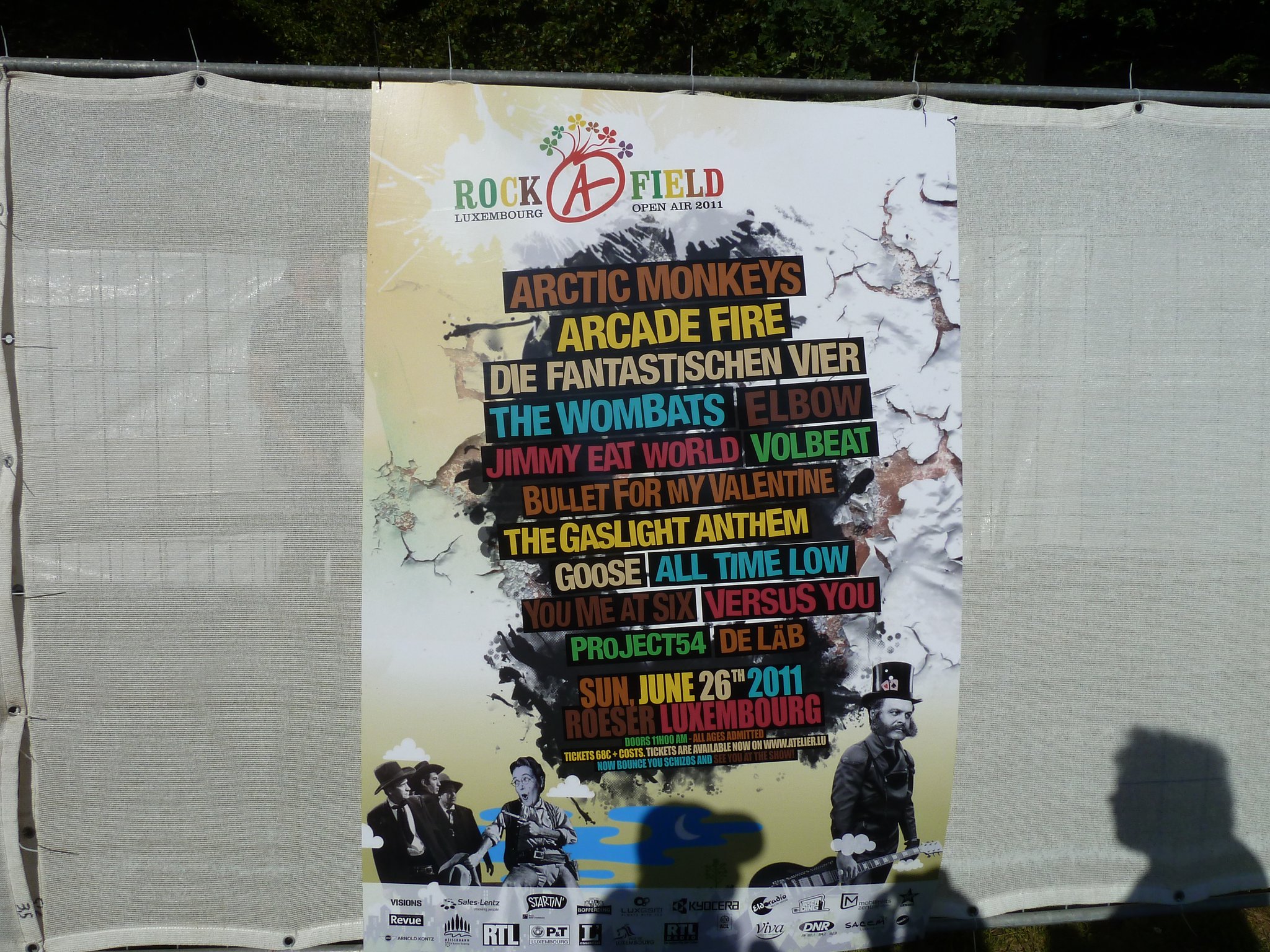 En deux-trois e-mails, me voilà inscrit pour le 26 juin au Rock A Field, au Luxembourg avec deux amis. Ce festival à Roeser est au beau milieu d'une forêt, loin de la ville mais ne dure qu'un jour. Après avoir eu les Prodigy, Franz Ferdinand entre autres, les têtes d'affiches étaient Bullet For My Valentine (replaçant Blink 182), Elbow, Arcade Fire donc et les Arctic Monkeys. Du beau monde.