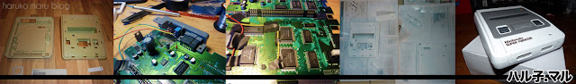 Alors que dire, comme toutes les snes qui me passent entre les mains, celle-ci bénéficie d'un montage à deux switchs, NTSC/PAL et 50/60 Hz faits à l'ancienne. J'ai réutilisé la toute première carte mère que j'ai modifié, qui était la moins réussie, ah je m'en rappelle encore ! Les mains moites, tremblantes, boule au ventre, la gueule au-dessus du fer à souder dans une pièce à 30° à lutter pendant 4 longues heures contre ces satanées puces microscopiques ! On se rappelle toujours de sa première fois non ? Évidement, le résultat en fut très moyen... soudures baveuses, câbles trop gros, boutons moches etc.. mais néanmoins opérationnel ! Les différentes parties de la coque (reconstituée) était en piteux état, d'un jaune castor à un jaune kakis. J'ai donc poncé, poncé, poncé, poncé, et pour finir recouvert d'un blanc satiné. Là encore, par crainte du carnage, je ne me suis pas posé de question, le blanc coûte moins cher, va pour le blanc !