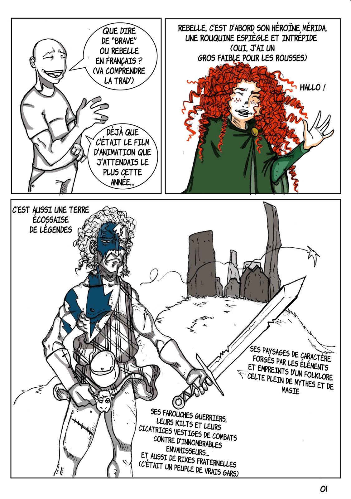 Rebelle c'était la promesse d'une quête initiatique dans les highlands et leurs mythes ancestraux avec en bonus, une belle rouquine joufflue et garçon manqué voulant s'affranchir du poids des traditions.