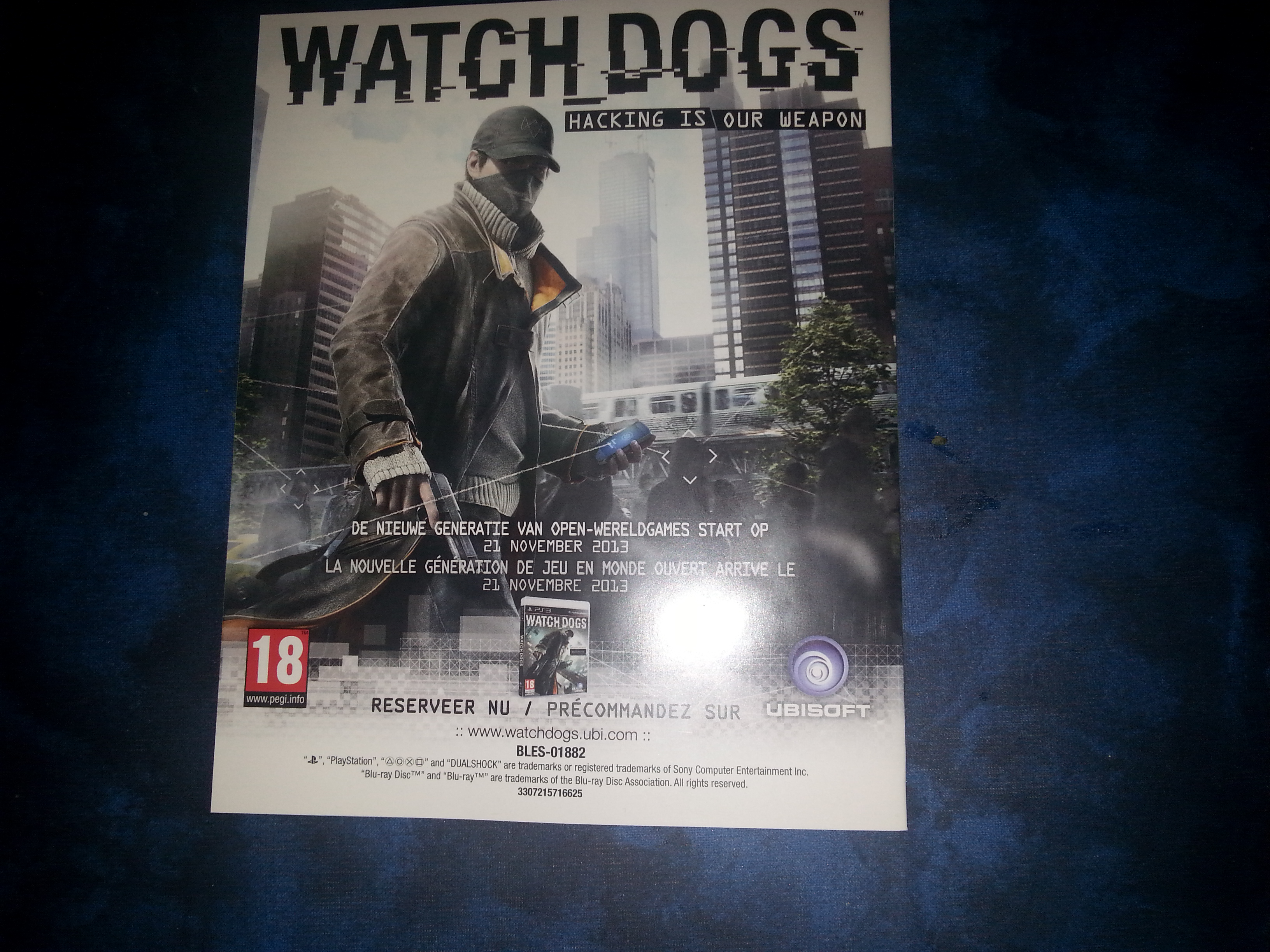 Tout le monde le sait (ou presque) que Watch Dogs a été repoussé 1 mois avant sa sortie. Je vais vous montrer une nouvelle preuve que Watch Dogs a répoussé au dernier moment par Ubisoft. Voilà ce que j'ai trouvé au dos du livret d'Assassin's Creed 4 : Black Flag.