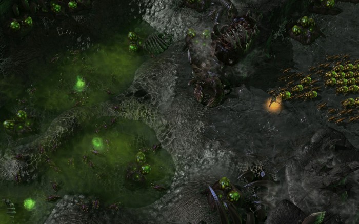 La race Zerg permet de créer rapidement des unités en masse et la se trouve sa force. Là ou les Terrans ont besoin de temps pour créer une armada solide, les Zergs peuvent innonder la map rapidement. Retour de la médaille, leurs nombre est élevé mais leur capacité à survivre est beaucoup plus faible. Le terme collateral damage prend tout son sens avec cette race. Pas grave si on perd quelques Zergs en cour de route, on les recrée facilement et rapidement.
