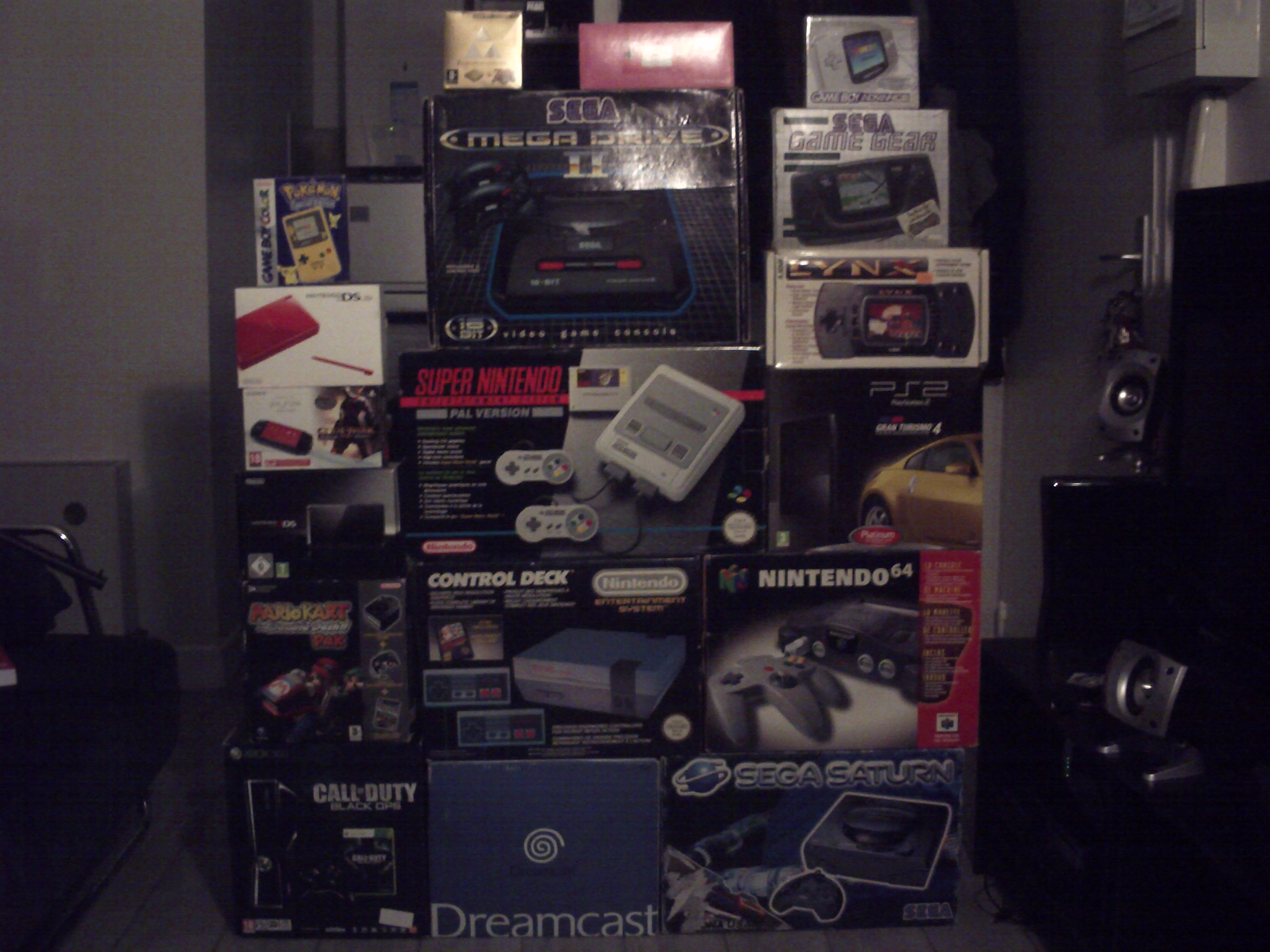 Sur ma photo, il manque la boite de la jaguar, de la game boy, de la ps one et de la master system.