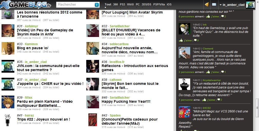 En traînant sur la page Communauté, j'ai eu la trèèèèèèèèèèèèèès agréable surprise de constater que 2 de mes posts sont parmi les plus lus. Je ne suis pas habitué aux popularités des stars de la communauté comme Mikadotwix, Serial Butcher ...