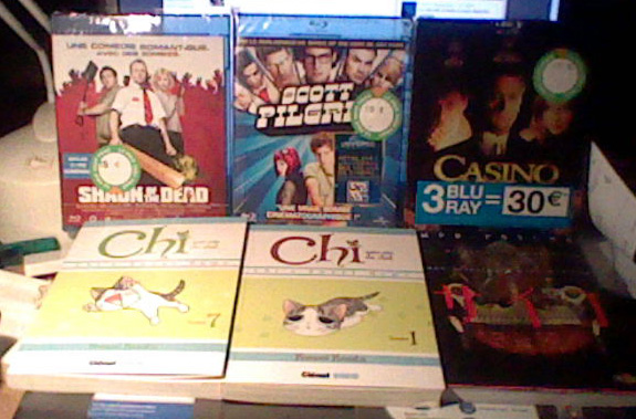 3 blu ray pour 30 euros, avec Shaun of the Dead, Scott Pilgrim et Casino en steelbook. Puis quelques mangas, avec Chii tomes 1 et 7 (J'ai laissé le tome 1 à mon ex, quel boulet :/), et MPD PSYCHO 15 (je ne sais même plus si j'ai le 14 :/).