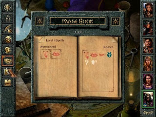 Dans l'icône livre du magicien, c'est l'endroit où le magicien gère ces sorts. Ceux-ci ne fonctionnent pas comme dans les 3/4 des RPG classique avec une barre de mana, en fait le fonctionnement est plus complexe.