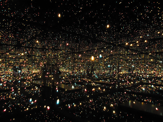 Ses motifs répétés, ses miroirs, ses lumières, démultiplient l'espace, et donnent une sensation d'infini extrêmement perturbante pour le spectateur. Celui ci est en effet engloutit dans l'œuvre, et perd totalement conscience de l'espace, comme Kusama durant ses délires.