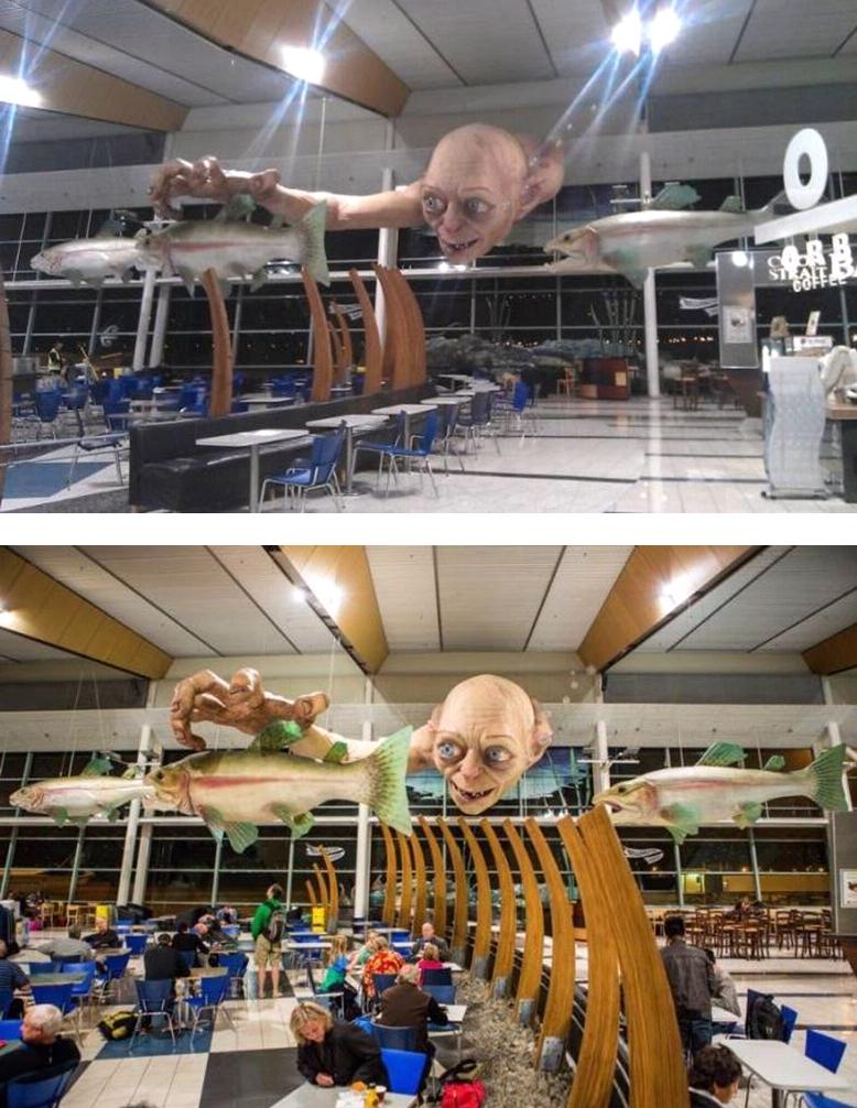 Ce Gollum qui semble surgir du mur pour attraper un poisson est vraiment une belle réalisation.