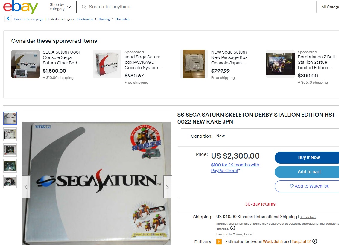 C’est une console rare (20 000 exemplaires produits) et on trouve peu sur le marché. Cependant, ne cédez pas à la tentation de l’acquérir au prix ci-dessous. En effet, moitié moins semble plus raisonnable et avec de la chance, on peut espérer l’avoir presque au tiers du prix indiqué sur l’image ci-dessous.