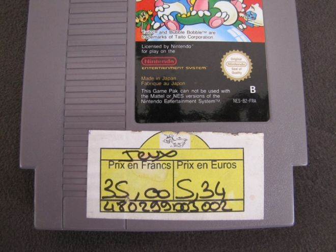 Ensuite, je me suis attaqué aux vieilles traces de colle d'étiquette ou même une étiquette à retirer sur mes cartouches de jeux. Voilà l'état d'origine :