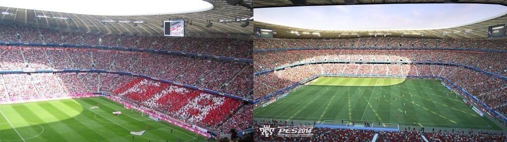 Cette image est tirée de la génération actuelle. A gauche une véritable photo, à droite une image du jeu PES 2014.