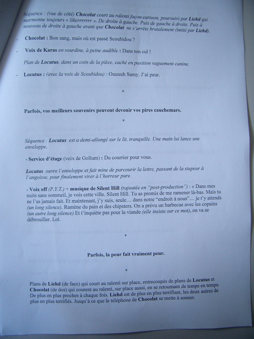 En parlant de scénario justement, voici une copie du script du film qui ne doit pas être nommé tellement il fait perdre 100d de SAN a quiconque le voit.Vous ne me croyez pas ?? Regardez...