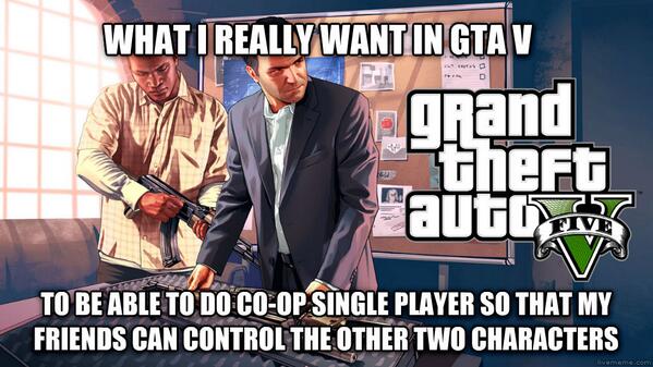 Cher @RockstarGames, Je veux et j'exige un mode coop' dans la campagne de #GTAV :)