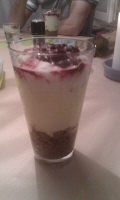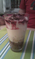 Avant de servir, on fini de remplir le verre avec de la chantilly qu'on va recouvrir de cerises amarana.