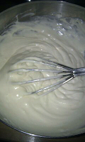 Quand vous avez cette couleur blanchi de vos jaune, on verse le mascarponne et on refouette tout ca pendant 1 à 2 minutes pour que tout soit bien amalgamé.