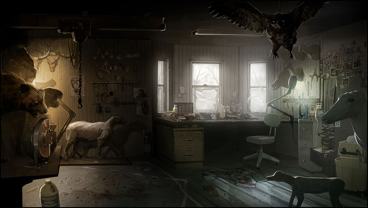 On continue avec un autre artiste, François Baranger, qui est l'auteur des multiples artworks des décors d'Heavy Rain, que l'on peut trouver d'ailleurs dans les bonus du jeu en les débloquant au fur et à mesure. Pour ceux qui n'ont pas fait le jeu et qui veulent le faire, ça peut gâcher la découverte des décors.