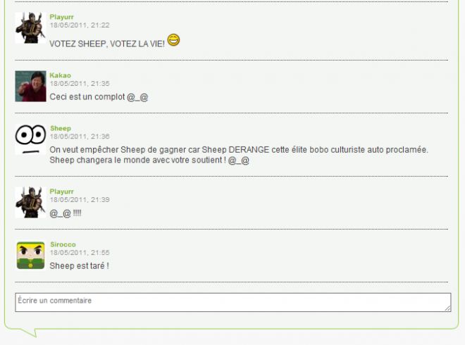 Nous nous sommes déjà fait avoir par celui qui réitère sans discontinu le même discours ! Ne recommencez pas la même erreur en élisant Sheep ! Oui, car ce mouton blanc laineux ne fait que rabacher le même discours afin de vous embrouiller l'esprit et vous asservir !