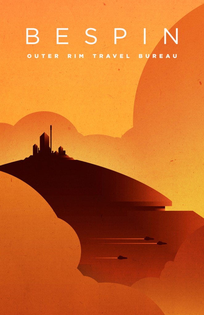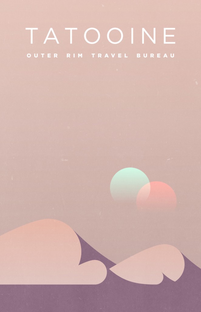 ...je propose de voyager un petit coup, à travers la galaxie par le biais de ce set d'affiches, très orientées Office du Tourisme made in Star Wars. Le graphiste Komboh nous propose 4 destinations pour le moins attirantes... Une mention spéciale pour la 4e affiche que je trouve géniale!...