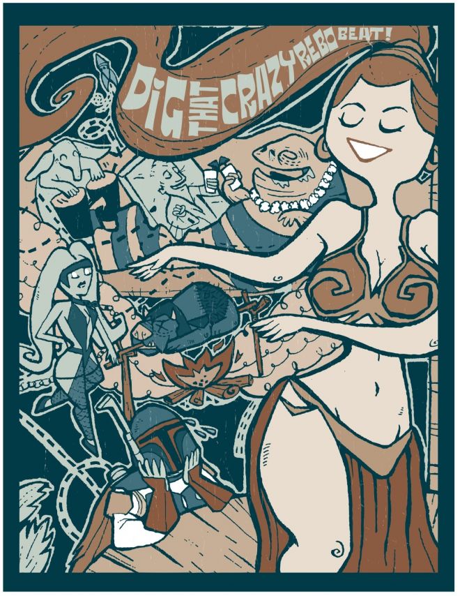 C'est la fête chez les Hutt... Jabba trinque avec un Solo dans son bloc de carbonite, la danseuse exclave se fait un méchoui de Gamorrean et Leia danse toujours, cette fois sous les yeux admiratifs d'un Boba représenté en amoureux transi... le tout sous les rythmes endiablés de Rebo...