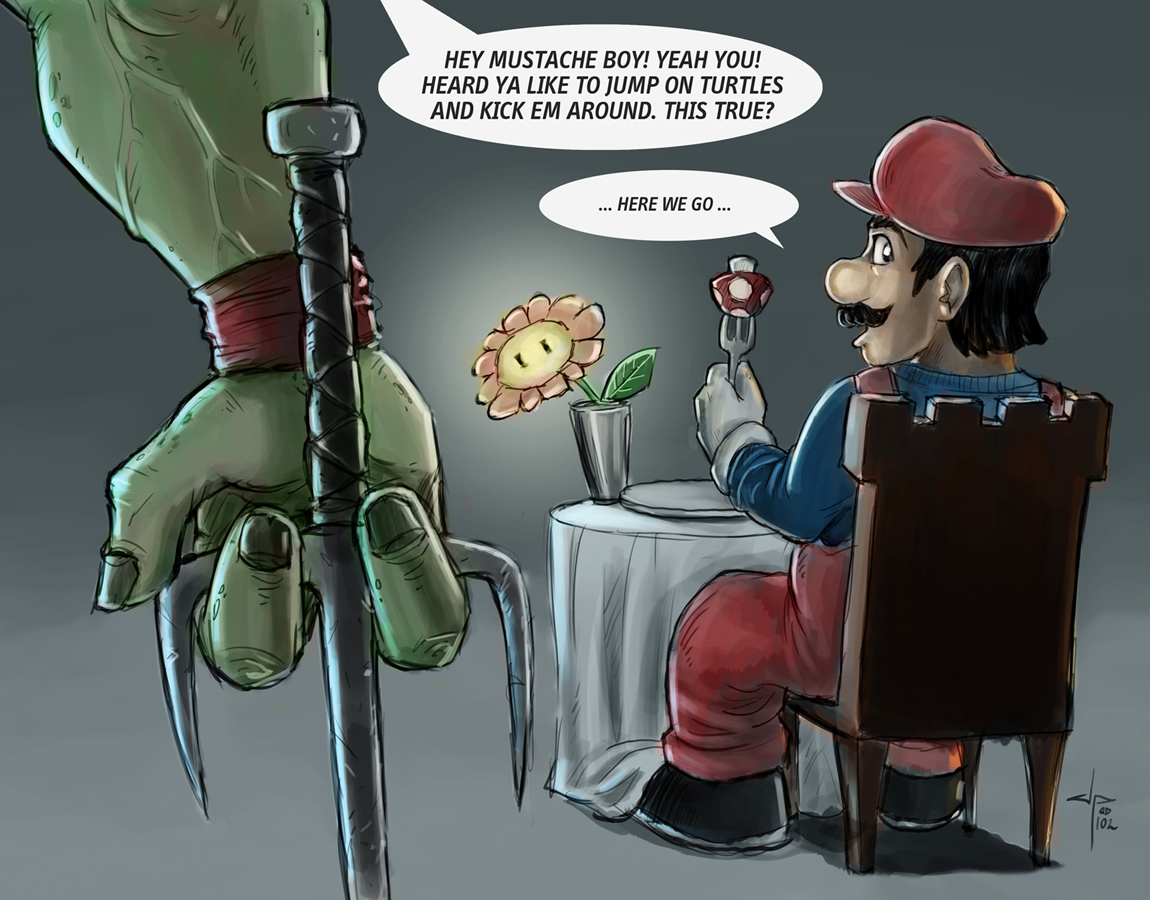 ...et que l'une des Tortues Ninja se la joue Ezio dans "Assassin's Creed"... Mario est dans la merde... Un crossover hilarant de J.P. Perez pour égayer cette matinée pluvieuse...
