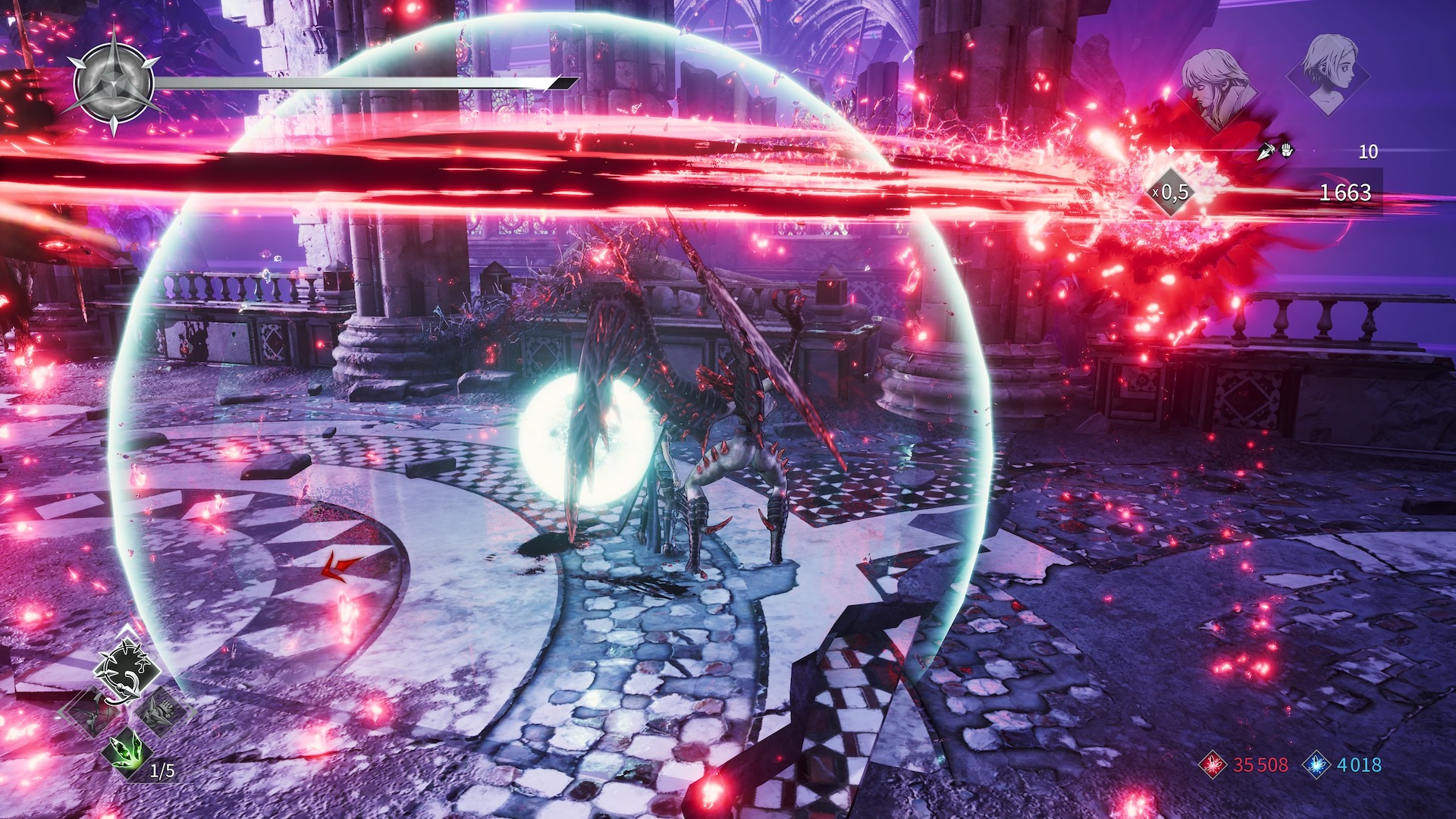 Il faut jongler entre les deux couleurs de champs tout en faisant attention à sa durée d’activation qui peut se prolonger un peu plus lorsque l’on tape sur le type d’ennemi correspondant à la couleur du champ activé.