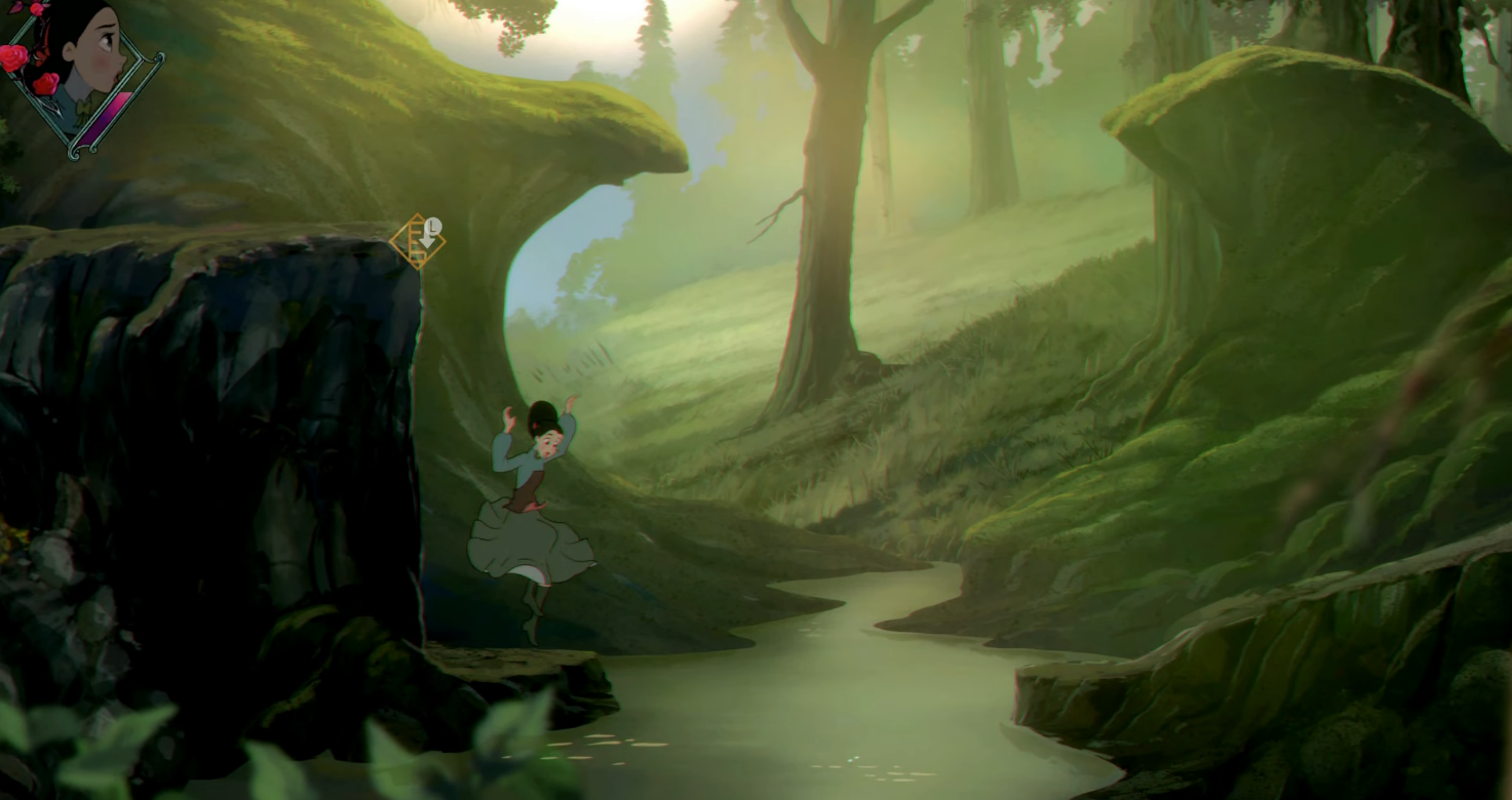 Aux premiers coups d’œil, on comprend vite que Bye Sweet Carole possède une identité graphique bien à part. Si son esthétique s’inspire de la dark fantasy, son animation et certains de ses personnages évoquent un style “Disney” old-school qui lui confère un charme particulier. L’animation, entièrement réalisée à la main image par image, est d’ailleurs bluffante : Lana, le personnage que vous incarnez, court, saute et interagit avec l’environnement tout en donnant réellement l’impression de regarder un dessin animé. Les décors et les autres personnages – qu’ils soient amis ou ennemis – bénéficient du même soin d’animation.