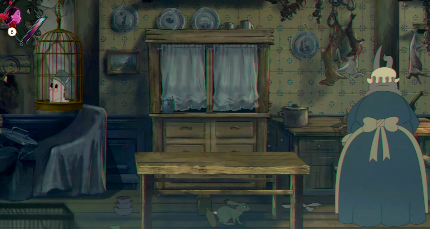 Certaines séquences imposeront à Lana d’éviter la détection d’autres personnages. Sous forme humaine ou lapin, la discrétion sera souvent essentielle : attention aux objets qui tombent, pouvant alerter les ennemis, ou aux zones trop éclairées dans les passages sombres. Par ailleurs, des phases de gameplay spécifiques viendront ponctuer l’aventure. Sans trop en révéler, Lana sera parfois accompagnée d’un second personnage avec lequel elle devra coopérer pour résoudre certaines énigmes, chacun ayant des capacités propres. Le jeu comportera aussi quelques séquences de QTE (par exemple lors d’une scène de danse, importante pour les jeunes filles à l’époque du récit) ainsi que de rares combats, Lana ne sachant pas se battre en temps normal. Notez que Lana n’est pas une héroïne classique : elle subit davantage les événements qu’elle ne les domine. En conséquence, les façons de mourir seront nombreuses, souvent brutales… et parfois même illustrées par une courte animation souvent amusante (pour le joueur, du moins). Mais c’est en commettant des erreurs que vous l’apprendrez.