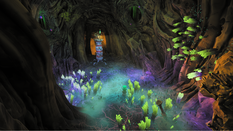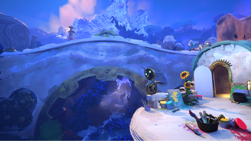 Surprise dès les premières secondes : on contrôle un phare qui a quatre pattes et qui peut se déplacer. Ce drôle de personnage peut diriger sa lumière, avec le stick droit, pour faire fuir des créatures ou éclairer des points précis qui permettent de faire pousser des plantes et ainsi ouvrir le passage. Les deux sticks étant utilisés pour bouger et pour la lumière, il est impossible de contrôler la caméra, on doit faire confiance aux plans choisis par le réalisateur, une contrainte qui renforce l’impression de traverser des tableaux peints à la gouache.