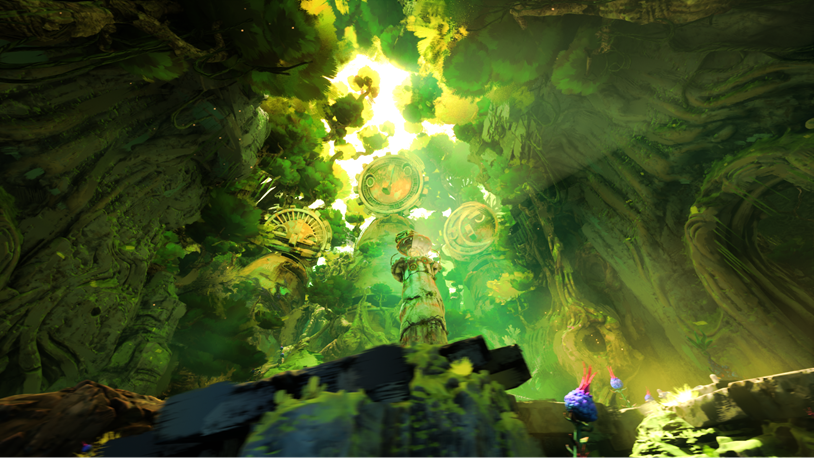 Visuellement, le jeu adopte au début une palette de tons bruns et terreux, qui rappelle un peu l’ère Xbox 360 / PS3 (20 ans déjà !). Associée aux déplacements linéaires à caméra fixe, ça donne une patine rétro agréable. Les graphismes sont magnifiques du début à la fin, et changeront de couleurs et d’éléments plusieurs fois tout en restant cohérent. On y retrouve l’imaginaire de son créateur, Lee Petty (https://leepetty.com/), qui a influencé les productions Double Fine de son art (le vaisseau Mog Chothra de Broken Age, c’est lui). On a envie de faire des screenshots toutes les cinq minutes! Côté son, Keeper se passe très bien de musique, quelques nappes d’ambiance viennent parfois accompagner l’exploration, mais elles marquent peu. Les énigmes sont très faciles, le rythme est tranquille, et la direction artistique fait le reste. Keeper est un jeu parfait pour les enfants ou à partager en famille. On n’a plus beaucoup de jeux comme ça sur cette génération de consoles.