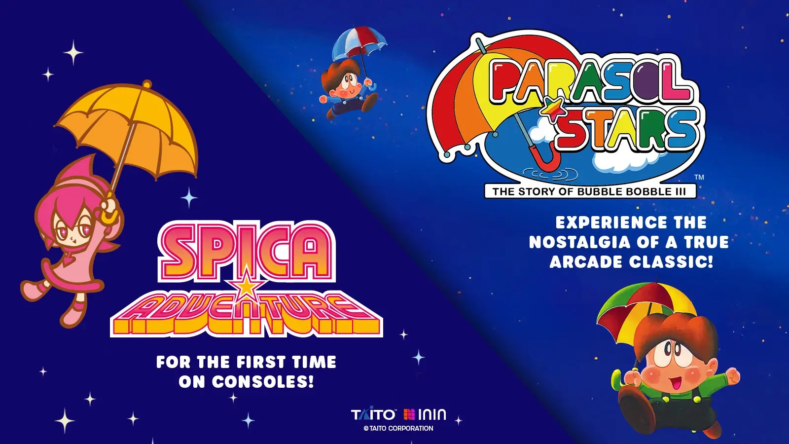 Vous le savez peut-être déjà si vous me lisez régulièrement, mais Taito – et en particulier la série Bubble Bobble c’est une des marottes du blog. Nous avions déjà testé Parasol Stars : the Story Of Bubble Bobble 3 lorsqu’il est sorti en 2024, mais aujourd’hui que le titre revient dans l’actualité dans une compilation avec un autre titre de Taito particulièrement méconnu (et pour cause il est resté une exclue Arcade et supports mobiles) : Spica Adventure. Cette nouvelle collection proposée par ININ Games se nomme Parasol Superstars. Comme nous avions déjà parlé de Parasol Stars, nous focaliserons ce test sur Spica Adventure, et vous invitons à relire notre test de Parasol Stars.