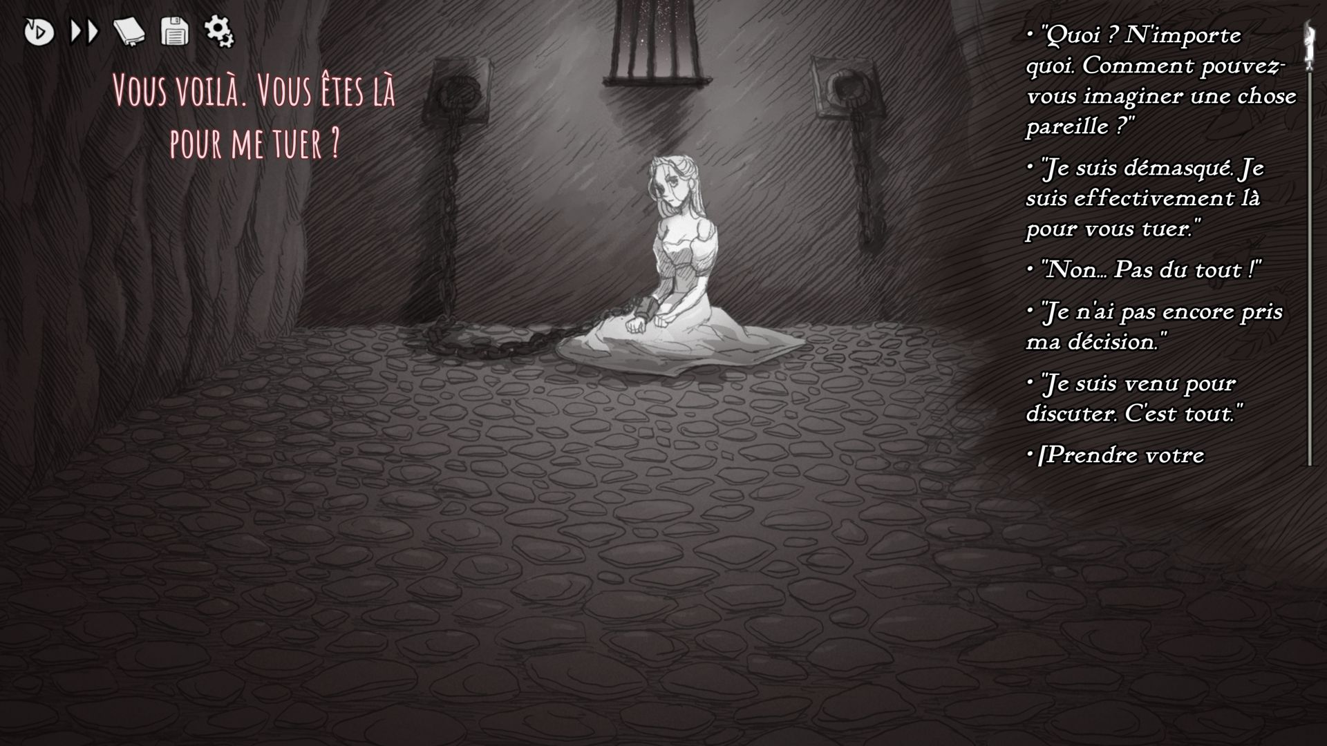Slay the Princess me faisait de l'œil depuis un moment, moi qui adore lire, et qui aime encore plus quand un jeu vidéo utilise ses propres codes pour nous raconter une histoire impossible à reproduire ailleurs. Cette version The Pristine Cut, avec ses ajouts scénaristiques et sa galerie de souvenirs est vraiment celle à prendre aujourd’hui si vous êtes intéressé. N’hésitez pas, foncez ! Pour 18€ vous vivrez un moment unique. Une histoire de plus en plus poignante, avec ses drames, sa violence, son horreur, mais aussi une certaine beauté macabre et une certaine tendresse pour cette princesse qui vous touchera bien plus profondément que vous ne le croirez au premier abord. Et n’oubliez pas : ce jeu est avant tout une histoire d’amour.