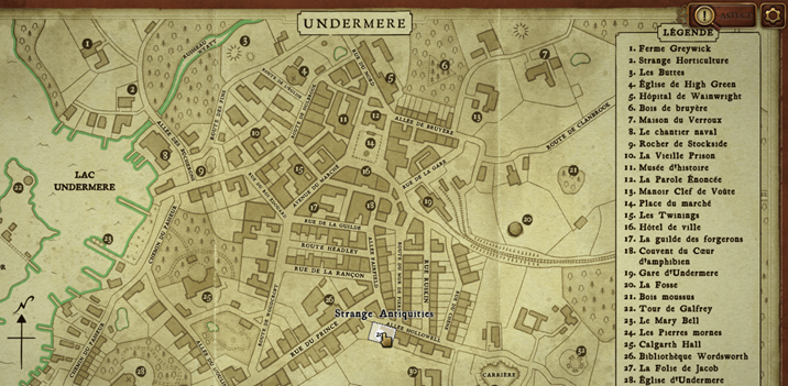 - Les recherches sur cartes : au fil du jeu, on recevra quelques lettres ou mots d’indice pour trouver le lieu correspondant sur une carte. Si on clique au bon endroit, on obtient généralement un nouvel objet à ajouter à la boutique.