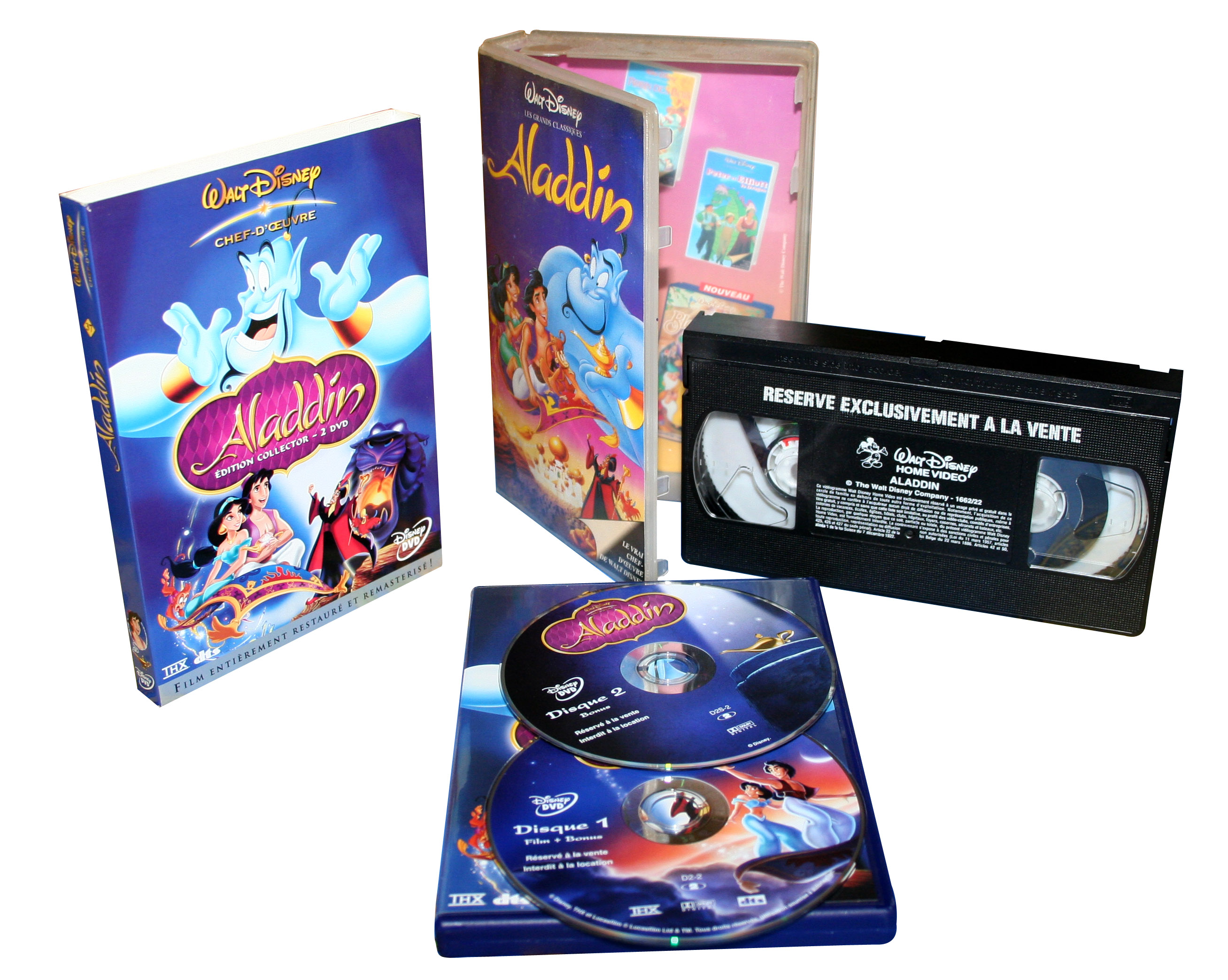 De la VHS au DVD on a gagné de la netteté de l'image. J'ai remis Aladdin en cassette vidéo récemment et comparé à la copie DVD, c'est vraiment le jour et la nuit quand à la qualité de l'image et du trait. Au delà même de cela, l'instabilité de l'image, en permanence parcourue de trait bleu ou rouge, et des différentes imperfections de la bande en VHS disparaissent. De même le son qui avait tendance à faire de grosses fausses notes est aujourd'hui net sur les DVD. Cela dit j'aimerais bien que quelqu'un m'explique (vraiment c'est une interrogation de ma part) d'où proviennent les permanentes vagues sonore qui explosent littéralement les tympans par moment. Regarder un DVD sans avoir la télécommande à portée c'est un peu prendre un risque de se faire désosser par ses voisins le lendemain. Un dialogue, presque en messe basse, puis un coup de feu et c'est l'apocalypse dans le salon!