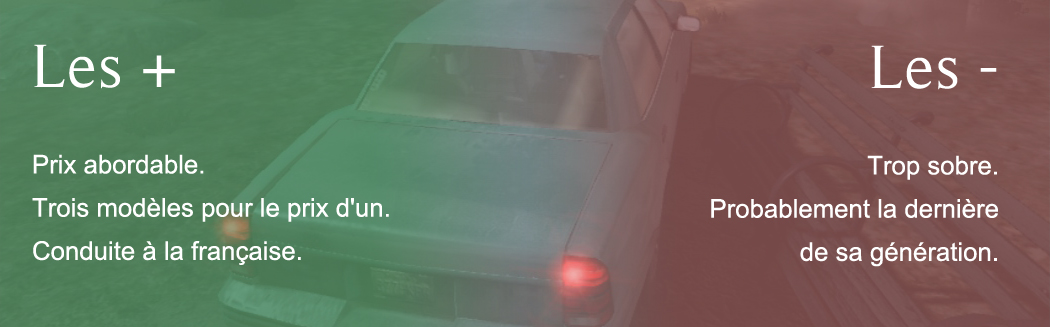 Alors que le marché du véhicule chiant fait grise mine suite à la crise de la HD qui a mis à l'honneur l'action à pied au détriment des utilitaires motorisés, quelques fabricants résistent à cette récession et nous procurent de temps à autre des modèles qui ne tiennent pas la route. Après la grande surprise du M35 Mako en 2007, mais réservé à l'usage militaire ou de la nouvelle génération de NRG900 qui en 2008 a mis d'accord l'ensemble des pilotes de VC sur la sensibilité de sa conduite (nous l'avions testé en plein centre-ville de Liberty City), c'est un constructeur français qui nous a offert ce qui reste probablement la voiture grand public la moins abordable en terme de conduite que l'on ai pu goûter depuis des années. Elle s'appelle l'AitD08.